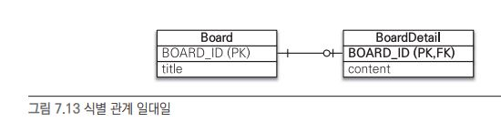 일대일 식별 관계를 어떻게 저장하는지 아래에서 확인할 수 있다.