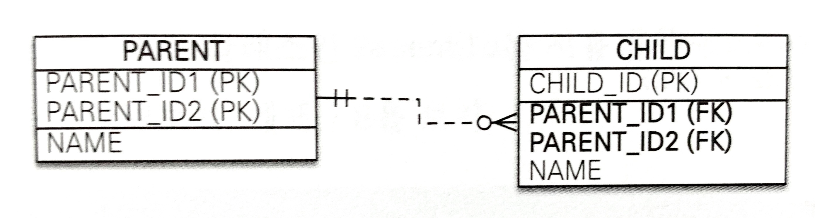 PARENT 테이블의 기본 키 PARENT_ID를 받아서 CHILD 테이블의 기본 키(CHILD_ID) + 외래 키(PARENT_ID)로 사용한다.