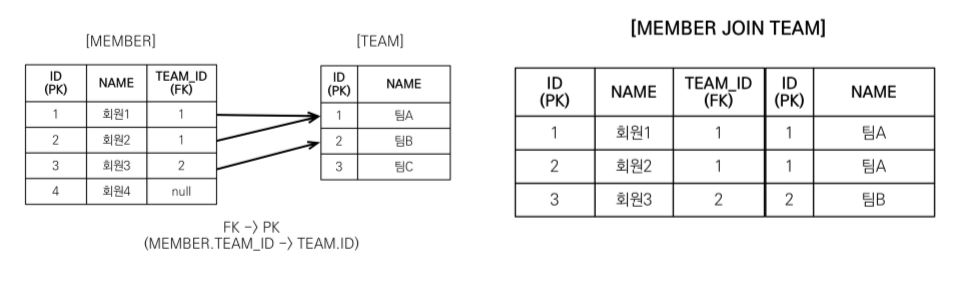 JPQL은 결과를 반환할 때 연관관계까지 고려하지 않는다. 단지 SELECT 절에 지정한 엔티티만 조회할 뿐이다.