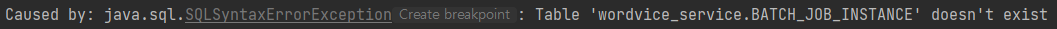 메타 테이블 데이터인 BATCH_JOB_INSTANCE가 존재하지 않는다는 에러와 함께 배치가 실패했다.