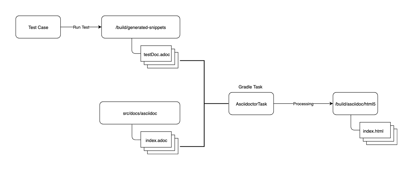 - 이렇게 생성된 asciidoc 문서는 AsciidoctorTask를 통해 html 문서로 processing 되어 /build/asciidoc/html5 하위에 html문서로 생성