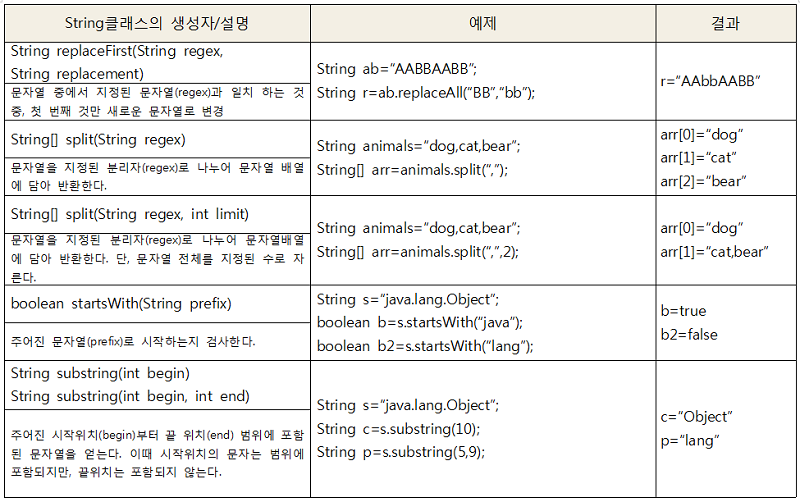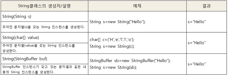 String클래스의 생성자와 메서드