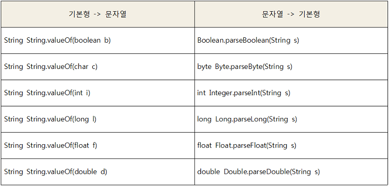 기본형 값을 String으로 변환시와 반대로 valueOf()를 쓰거나 parseInt()를 사용하면 된다.