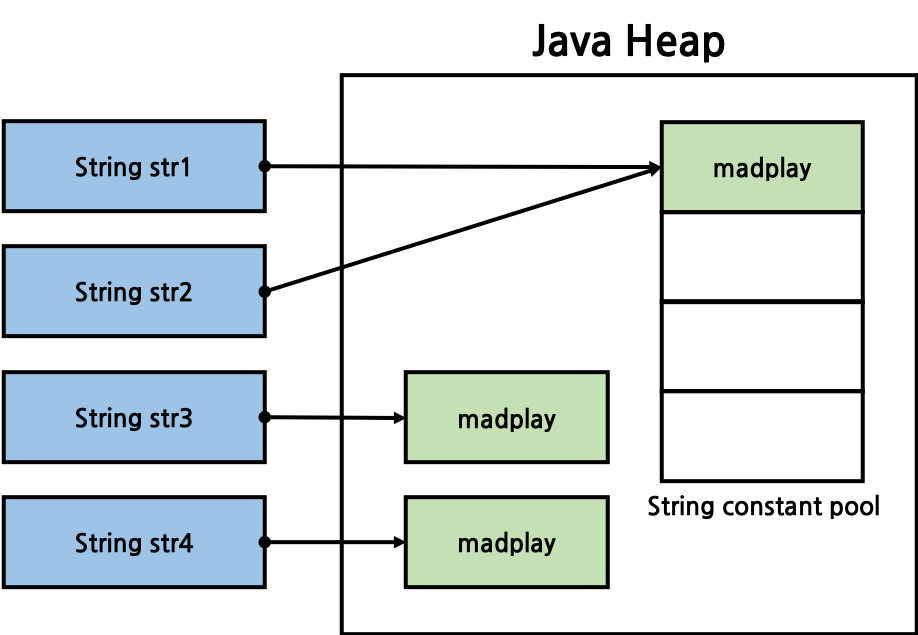 String str2 = new String("abc") // 새로운 String인스턴스를 생성